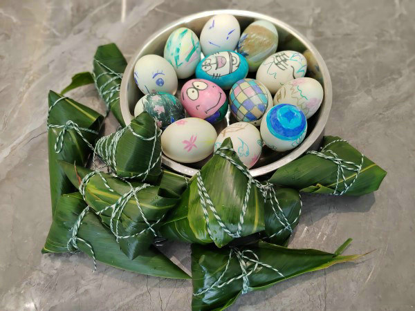 另一邊,職工們正聚精會(huì)神地在咸鴨蛋上繪制圖案,有的畫(huà)上自己喜歡的卡通人物彰顯著自己的青春個(gè)性,有的天馬行空腦洞大開(kāi)進(jìn)行抽象主義創(chuàng)作,有的則畫(huà)上寓意平安喜樂(lè)的花紋和圖案,寄托著對(duì)端午節(jié)“平安喜樂(lè)、國(guó)泰民安”的美好愿望。