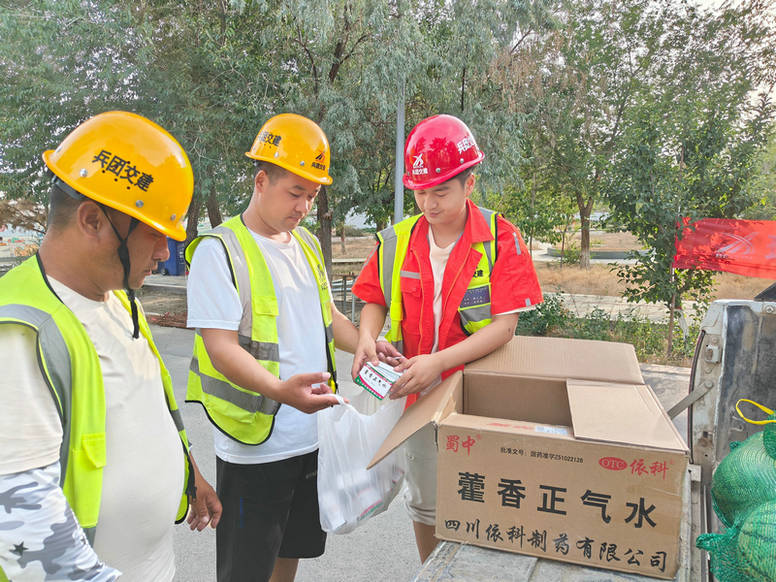石河子訊(通訊員 李宇通)為切實(shí)維護(hù)好高溫期間現(xiàn)場(chǎng)工人的身體健康,改善其生產(chǎn)生活條件,做好防暑降溫關(guān)懷,保障項(xiàng)目生產(chǎn)過(guò)程中的安全與健康,近日,北新路橋集團(tuán)兵團(tuán)交建公司第八師G335二標(biāo)項(xiàng)目開(kāi)展了“夏日送清涼 愛(ài)心降酷暑”活動(dòng)。
