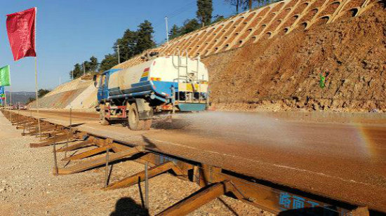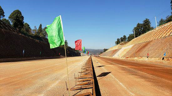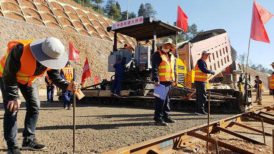 云南滇中新區(qū)機(jī)場(chǎng)北高速工程全長(zhǎng)17.615千米,設(shè)計(jì)為雙向八車道高速公路,路面寬18.75米,設(shè)計(jì)速度100千米/小時(shí),計(jì)劃于2019年12月建成通車。該項(xiàng)目是中國(guó)鐵建大橋局西北公司在云南地區(qū)承建的首個(gè)路面項(xiàng)目,為了確保施工品質(zhì),項(xiàng)目部針對(duì)工程段零散、工期緊任務(wù)重、環(huán)保要求高等挑戰(zhàn),設(shè)定了“品質(zhì)高效、安全快速、控制成本”的建設(shè)目標(biāo)。