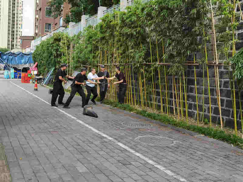 物業(yè)工作人員身著整齊制服,手持專業(yè)治安裝備,嚴陣以待。演練中,物業(yè)人員對占道經(jīng)營攤販進行勸阻時發(fā)生爭執(zhí)并引發(fā)沖突斗毆。見狀,他們立即上前制止,迅速將攤販攔截控制,成功解除危機。此外,在基本醫(yī)療保障方面,物業(yè)人員也展現(xiàn)出專業(yè)應急處置能力,手法堪比醫(yī)護人員。