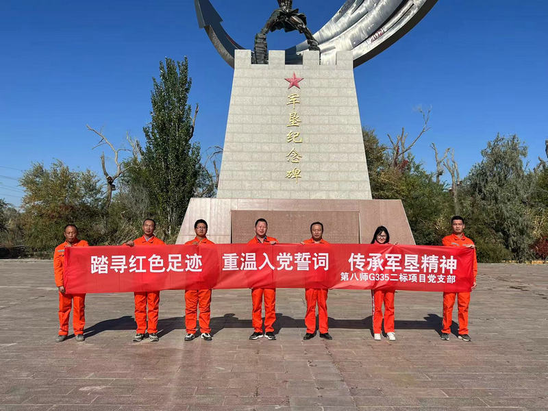石河子訊(通訊員 穆鴻宇)近日,北新路橋集團兵團交建公司第八師G335二標項目黨支部組織項目全體黨員前往駝鈴夢坡紅色教育基地,開展“黨旗映天山”主題黨日活動。大家身著整齊的工裝,胸前的黨徽在陽光下熠熠生輝,一起感受著“熱愛祖國、無私奉獻、艱苦創(chuàng)業(yè)、開拓進取”的兵團精神。