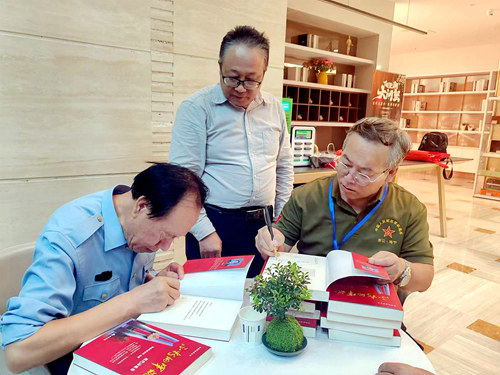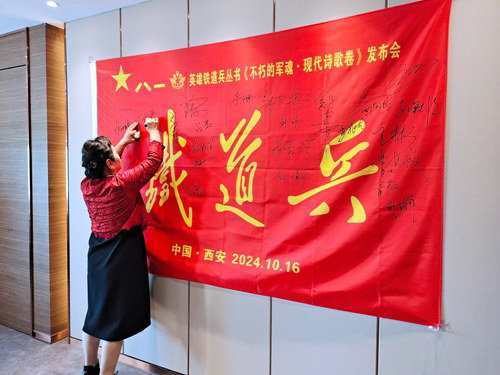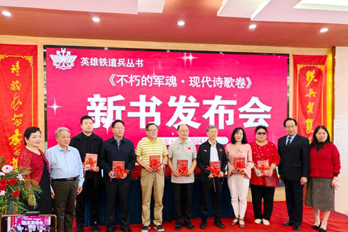 在出席新書發(fā)布會現(xiàn)場近百人的鐵道老兵、學(xué)兵、軍嫂和鐵二代的見證下,文創(chuàng)中心常務(wù)副主任、英雄鐵道兵叢書副總編、該書編委王林山戰(zhàn)友宣布新書揭幕?,F(xiàn)代詩歌卷主編李汪源;中國電影文學(xué)會常務(wù)理事、國家二級教授韓志晨;英雄鐵道兵叢書總策劃、著名詩人劉勝(遠(yuǎn)方);英雄鐵道兵叢書副總編鄭建平;軍嫂代表、鐵粉陳淑娟共同為《不朽的軍魂·現(xiàn)代詩歌卷》揭幕,霎時,會場響起經(jīng)久不息的熱烈掌聲……