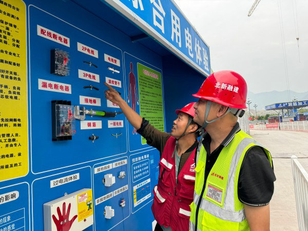 為了切實(shí)提高安全教育培訓(xùn)的效果,該項(xiàng)目將安全體驗(yàn)區(qū)設(shè)置在施工現(xiàn)場門口,方便工人們每天在參加班前會時即刻體驗(yàn),在上崗作業(yè)前再次深刻體驗(yàn)“安全無小事”的真諦。安全體驗(yàn)區(qū)設(shè)置了安全帽撞擊體驗(yàn)區(qū)、機(jī)械傷害體驗(yàn)區(qū)、綜合用電體驗(yàn)區(qū)等多項(xiàng)體驗(yàn)區(qū)域,巧妙融合了展板展示、實(shí)景模擬、實(shí)物演示以及互動體驗(yàn)等多種手段,并借助聲、像、光、電等先進(jìn)技術(shù),進(jìn)一步實(shí)現(xiàn)了理論知識與實(shí)踐體驗(yàn)的無縫對接。職工們一旦踏入這片區(qū)域,便能立即沉浸于一個全方位、多角度的安全教育環(huán)境中,不僅能夠在視覺和聽覺上獲得直觀感受,還能通過親身參與和互動體驗(yàn),深入了解和掌握安全生產(chǎn)多個領(lǐng)域的安全知識。