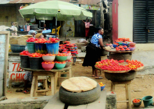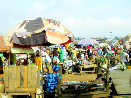 伊巴丹市場(chǎng)一角(定期有集市,市場(chǎng)中到處充滿了英語(yǔ)的討價(jià)還價(jià)之聲)
