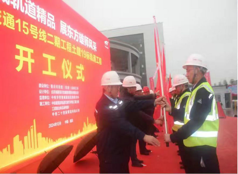 12月5 日上午,中鐵建重慶軌道交通 15號(hào)線二期總總承包部19標(biāo)軌道工程開工儀式在物流園北站鋪軌基地盛大舉行,當(dāng)開鋪令下達(dá)后,現(xiàn)場(chǎng)禮炮齊鳴,禮花沖天,伴隨著響亮的鳴笛聲,首塊預(yù)制軌道板順利起吊下井,這一時(shí)刻,如同一顆璀璨的星辰,照亮了山城軌道交通建設(shè)新的征途,標(biāo)志著工程建設(shè)由土建步入鋪軌的重大工序轉(zhuǎn)換,按下重慶軌道交通15號(hào)線二期鋪軌“啟動(dòng)鍵”。