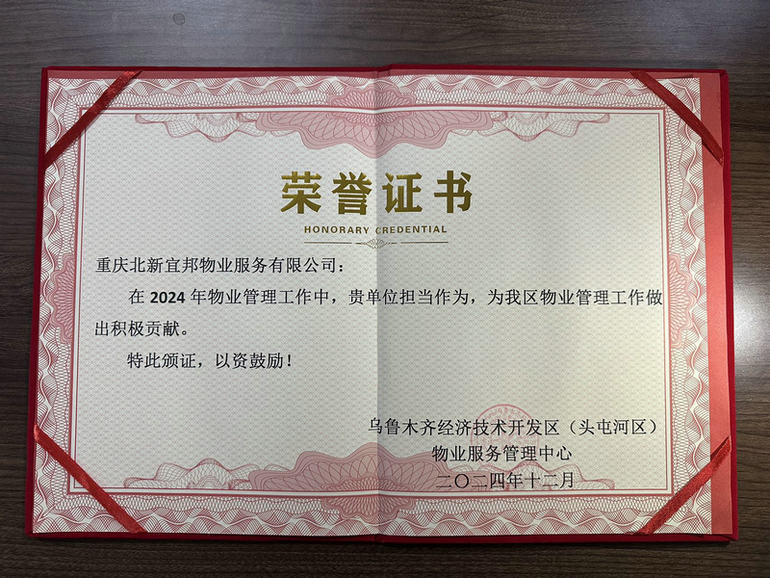 烏魯木齊訊(通訊員 馬小玲)近日,重慶北新宜邦物業(yè)服務(wù)有限公司憑借其卓越的服務(wù)品質(zhì)和專業(yè)的管理水平,在眾多同行中脫穎而出,被烏魯木齊經(jīng)濟技術(shù)開發(fā)區(qū)(頭屯河區(qū))物業(yè)服務(wù)管理中心授予“擔(dān)當(dāng)作為”先進單位榮譽稱號,這一殊榮是對該宜邦物業(yè)長期以來辛勤付出和杰出貢獻的高度認(rèn)可。