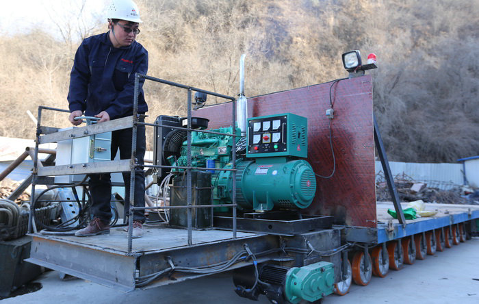 小南塬隧道整體設(shè)計(jì)為橢圓形,隧道底部空間只有7米,中間寬度有10米。作為中國鐵建首批命名的勞模創(chuàng)新工作室,“馬小利勞模創(chuàng)新工作室”根據(jù)隧道空間特點(diǎn)設(shè)計(jì)制作“隧道施工車輛自動調(diào)頭轉(zhuǎn)盤”,讓其高出地面排水溝、電纜槽,施工車輛駛?cè)朕D(zhuǎn)盤,調(diào)頭轉(zhuǎn)向時正好利用隧道空間最寬處。該轉(zhuǎn)盤功率為2.2千瓦,重量12噸,利用從棧橋、二襯臺車上拆下的槽鋼、鋼板制作,只需按鈕操作,最多一分鐘完成轉(zhuǎn)向,實(shí)現(xiàn)了自動化。