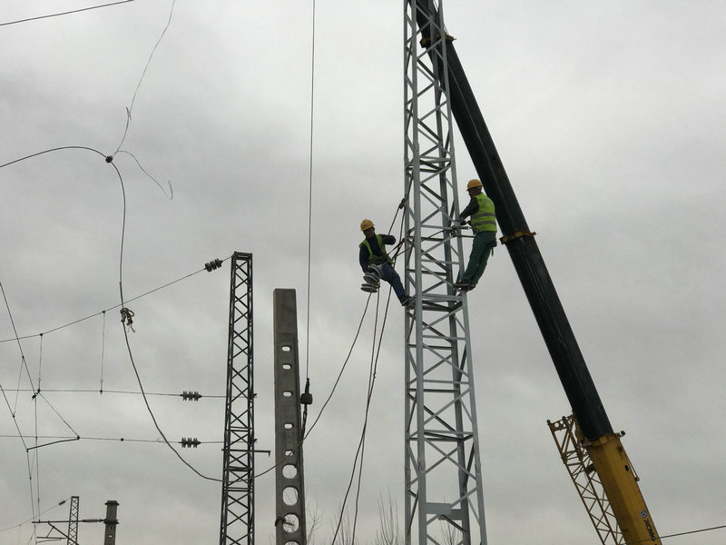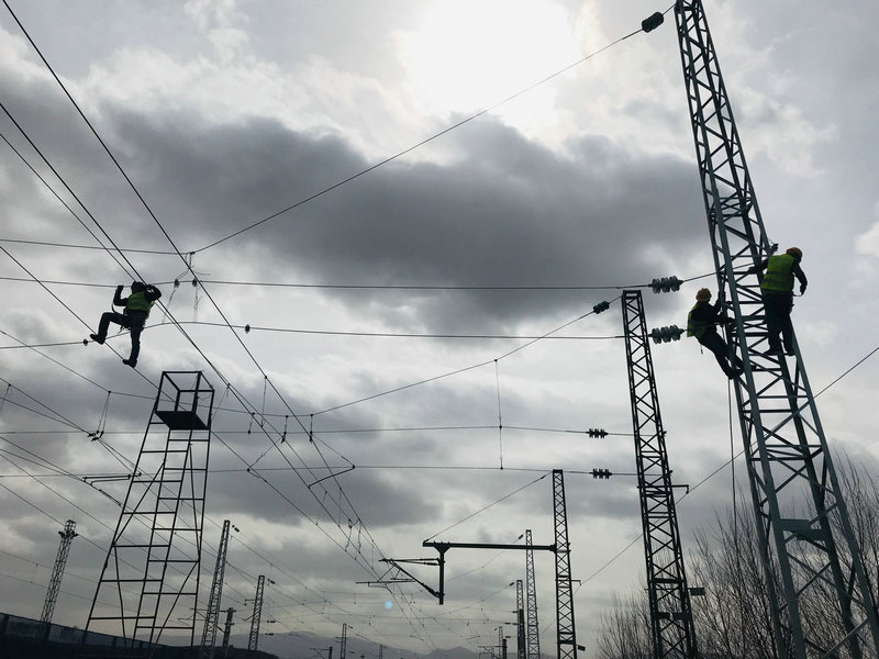 本次Ⅲ級封鎖施工要完成三個施工點的電氣化接觸網(wǎng)改造任務(wù),時間緊,工作量大,既有線施工安全風(fēng)險高,必須與時間賽跑,集中精力進行攻堅戰(zhàn),才能在封鎖施工點內(nèi)完成。9:25時,安塘站第三個封閉點施工開始,從施工準(zhǔn)備,班前點名,大家進場進行驗電接地,頃刻間施工現(xiàn)場人影攢動。為了確保施工安全,他們嚴格按照既定施工方案及專項安全防護方案進行封鎖施工,人員、機械、設(shè)備在封鎖前兩小時就位準(zhǔn)備。接觸網(wǎng)施工隊作業(yè)人員在確保施工質(zhì)量和安全的前提下,搶進度、趕任務(wù)。組立、橫跨、倒錨、拆除等各道工序都在規(guī)定的時間內(nèi)完成,確保了施工在封鎖點內(nèi)順利完成。