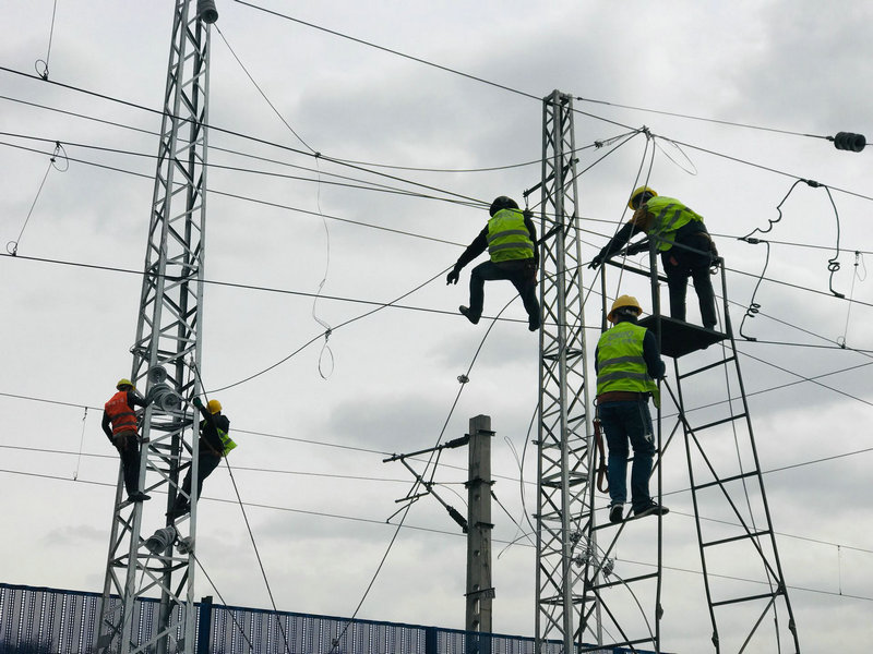 據(jù)悉,從9:25時到11:55時,在電氣化公司安質(zhì)部部長張華、安質(zhì)部高工趙秀紅和業(yè)主代表、總監(jiān)、安塘站等領(lǐng)導(dǎo)以及項目領(lǐng)導(dǎo)班子的指導(dǎo)和盯控下,現(xiàn)場管理人員與施工人員齊心協(xié)力,爭分奪秒,克服作業(yè)面窄小,交叉施工多,既有線安全風(fēng)險高,施工難度大等諸多困難。經(jīng)過了150分鐘的有序施工,完成接觸網(wǎng)支柱組立5根,倒錨1處,軟橫跨架設(shè)2組,回流線間架安裝及倒安子3處,拆除既有鋼柱2根,使節(jié)點目標(biāo)節(jié)節(jié)兌現(xiàn),打了一場漂亮的攻堅仗,在有限的時間內(nèi)順利完成了本次天窗施工任務(wù)。施工完畢后,項目安全防護員對現(xiàn)場內(nèi)外進行仔細檢查確認,對施工廢棄物、遺留工具或垃圾及時清理干凈,組織人員安全撤出,為本次天窗施工畫上圓滿的句號。