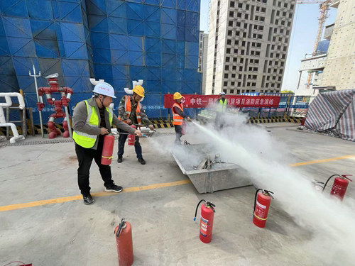 隨后在項(xiàng)目部施工現(xiàn)場(chǎng)開展了消防應(yīng)急演練活動(dòng),現(xiàn)場(chǎng)演示了滅火器、消火栓等消防器材的正確使用方法。員工們踴躍參與實(shí)踐操作,親身體驗(yàn)了滅火的過(guò)程,進(jìn)一步掌握了消防器材的使用技巧。