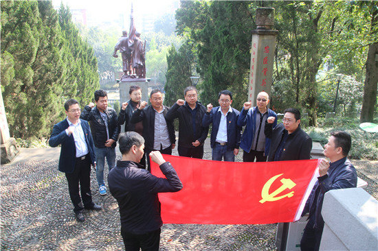 在綦江革命烈士紀念塔前,前來參加祭掃活動的項目部黨員在烈士紀念碑前莊嚴肅立,向紀念塔敬獻了鮮花和花圈。在烈士墓碑前集體三鞠躬,表達了對英烈們的哀思和悼念。面向黨旗,重溫入黨誓詞,拳拳誓言彰顯了黨員愛國之心。