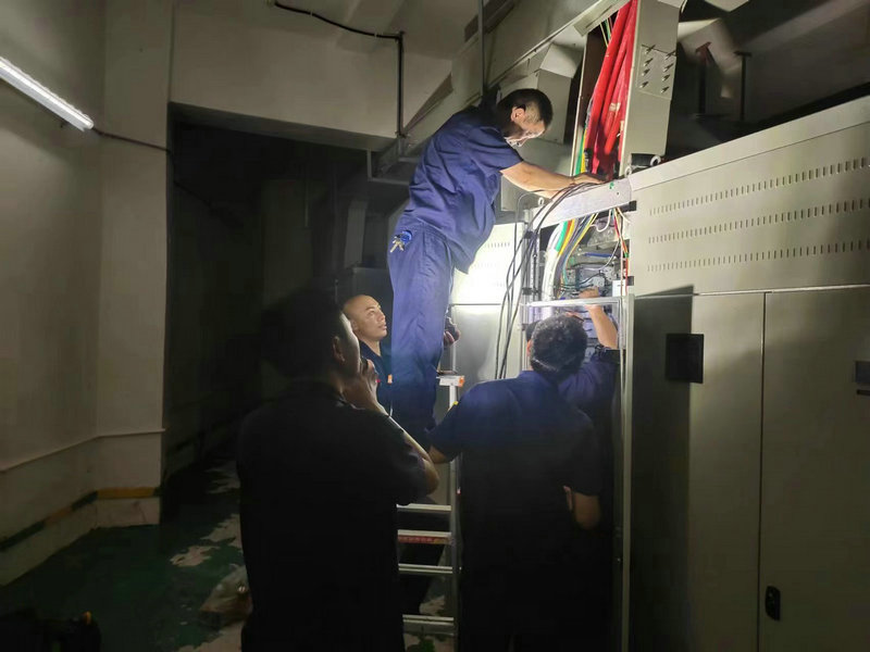 停電瞬間,維養(yǎng)部立即啟動應(yīng)急響應(yīng)。值守人員手持強(qiáng)光手電,第一時(shí)間駐守設(shè)備機(jī)房,實(shí)時(shí)監(jiān)測運(yùn)行狀態(tài);中控室工作人員緊盯監(jiān)控系統(tǒng),全程關(guān)注146臺電梯轎廂情況,確保無人員滯留。在巡檢過程中,經(jīng)驗(yàn)豐富的劉師傅憑借敏銳聽覺,在二街區(qū)配電室發(fā)現(xiàn)線路異響。經(jīng)萬用表檢測,確定為相線端子螺絲松動、接觸面氧化燒蝕。他迅速采取緊固、打磨及絕緣處理措施,成功排除重大安全隱患。