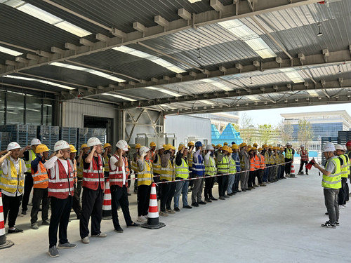 5月29日上午,中國西電智慧產業(yè)園項目在施工現(xiàn)場E-2#廠房舉行以“人人講安全、個個會應急——查找身邊安全隱患”為主題的2025年“安全生產月”活動啟動儀式。項目負責人趙宏安、西電全資劉雪哲以及監(jiān)理單位安全總監(jiān)馬軍出席儀式并作動員講話,項目部全體員工及一線作業(yè)人員共計70余人參加。項目負責人趙宏安帶領70余名建設者莊嚴宣誓,并在橫幅標語簽名墻寫滿責任擔當。 此次啟動儀式吹響了西電項目部安全生產攻堅號角。
