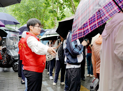 7日清晨,因雨水天氣,在社區(qū)的統(tǒng)一安排下,志愿者們迅速在學(xué)校門口搭建了應(yīng)急愛心助力志愿服務(wù)點(diǎn),為考生和等待的家長(zhǎng)們提供遮風(fēng)擋雨的地方,同時(shí)為考試和家長(zhǎng)提供礦泉水、應(yīng)急文具、休息板凳等。待考生進(jìn)入考場(chǎng)后,志愿者主動(dòng)邀請(qǐng)家長(zhǎng)進(jìn)入帳篷下避雨,與家長(zhǎng)們聊及高考注意事項(xiàng),緩解家長(zhǎng)的焦慮心情。過程中,志愿者們積極協(xié)助太乙路辦事處維持考場(chǎng)外紀(jì)律秩序,文明引導(dǎo)行人和車輛停放秩序,全力保障考點(diǎn)周邊環(huán)境。考試結(jié)束,志愿者們?yōu)槲磾y帶手機(jī)的考生提供電話服務(wù),幫助及時(shí)聯(lián)系家長(zhǎng),節(jié)約考生時(shí)間,做好充足午休,為下一場(chǎng)考試做好充分準(zhǔn)備。青年志愿者們高度的責(zé)任感和熱情的服務(wù)態(tài)度,成為西安市鐵一中考場(chǎng)外一道亮麗的風(fēng)景線。