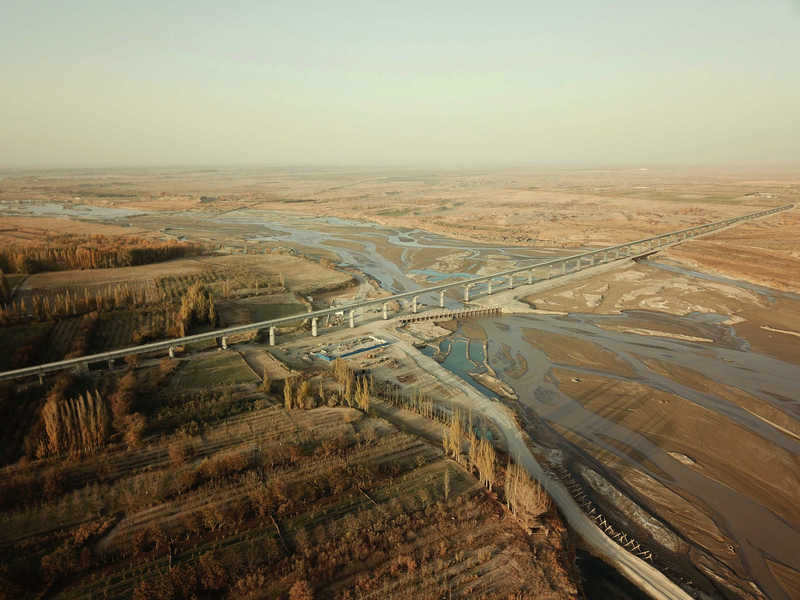 和若鐵路(和田市至若羌縣)全長825.476公里,線路設計時速120公里。和若鐵路是西部地區(qū)重要的區(qū)域路網(wǎng)干線,也是新疆“四縱四橫”鐵路主骨架的重要組成部分。和若鐵路與南疆鐵路、格庫鐵路共同構成長達2712公里的環(huán)塔克拉瑪干沙漠鐵路環(huán)線,是新疆繼去年北疆鐵路環(huán)線形成之后的又一鐵路環(huán)線,該工程自2019年5月開工,2022年6月通車運營,結束了和田地區(qū)洛浦、策勒、于田、民豐等縣和巴州且末縣等地不通火車的歷史,同時將南疆地區(qū)人民群眾出疆里程縮短了一千多公里。