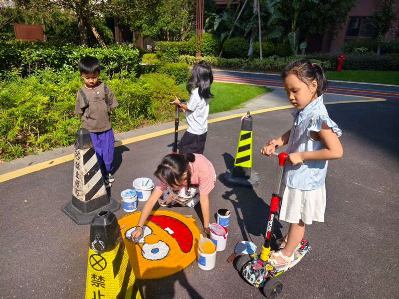 活動(dòng)當(dāng)天,物業(yè)工作人員提前備齊顏料、畫(huà)筆、調(diào)色盤(pán)等創(chuàng)作工具,消息一經(jīng)傳開(kāi),便吸引不少業(yè)主主動(dòng)攜子女參與。大家俯蹲在井蓋旁,分工明確、配合默契,有繪畫(huà)基礎(chǔ)的業(yè)主主動(dòng)承擔(dān)細(xì)節(jié)勾勒工作,精準(zhǔn)描繪出卡通形象、生活場(chǎng)景的輪廓,小朋友們則在家長(zhǎng)的耐心指導(dǎo)下,為圖案填充上鮮亮的色彩。與此同時(shí),物業(yè)工作人員一邊不時(shí)提醒大家避讓過(guò)往行人,一邊及時(shí)引導(dǎo)工具收納,全力保障現(xiàn)場(chǎng)秩序。經(jīng)過(guò)兩個(gè)多小時(shí)的協(xié)作,小區(qū)內(nèi)十余處井蓋完成“煥新”,原本冰冷的設(shè)施瞬間變得鮮活靈動(dòng)。