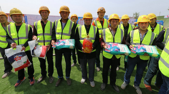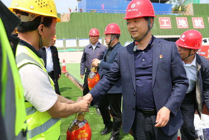 鄭州交通建設(shè)投資有限公司監(jiān)事會(huì)主席、工會(huì)主席王加喜慰問(wèn)建設(shè)者