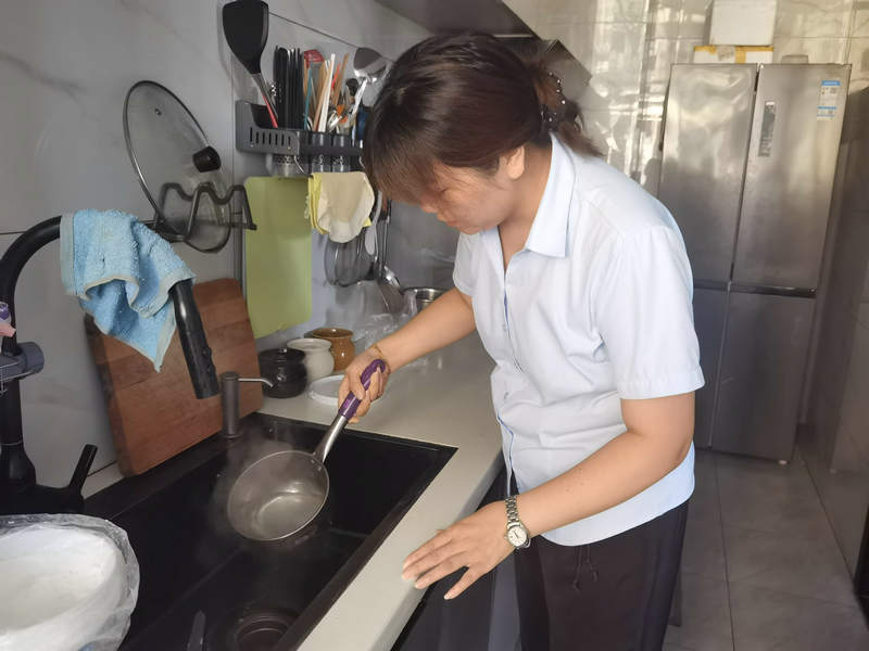 突發(fā)狀況前,她們更是業(yè)主的“及時(shí)雨”。此前,一位業(yè)主家中水龍頭突發(fā)漏水,管家接到求助電話后,10分鐘內(nèi)便攜帶扳手、密封圈等工具上門。一邊麻利拆解故障部件、更換零件,一邊安撫業(yè)主情緒;維修結(jié)束后,還順手擦拭臺面水漬,臨走時(shí)貼心叮囑“有問題隨時(shí)找我”,讓業(yè)主倍感溫暖。