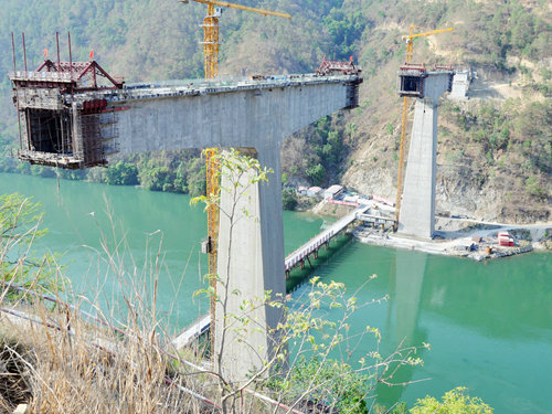 中國(guó)鐵路工程建設(shè)網(wǎng)訊(通訊員 鄭建軍)5月15日,備受各級(jí)領(lǐng)導(dǎo)關(guān)注、榮獲中國(guó)鐵路總公司昆明局集團(tuán)2018年轄區(qū)內(nèi)鐵路建設(shè)項(xiàng)目“標(biāo)準(zhǔn)化管理三星級(jí)樣板工地”的大臨鐵路瀾滄江雙線大橋,再次迎來(lái)中新社和昆明鐵道報(bào)的聯(lián)合采訪。擔(dān)負(fù)施工的中鐵十二局集團(tuán)大臨鐵路三工區(qū)項(xiàng)目經(jīng)理趙凡介紹說(shuō):瀾滄江雙線大橋位于小灣電站下游的深山峽谷之中。1號(hào)墩位于陡峭的瀾滄江左岸,2號(hào)墩位于水深達(dá)40米的瀾滄江中,最高墩76米,兩墩間為188米的連續(xù)剛構(gòu),是大臨鐵路全線跨度最大、橋墩最高的唯一一座跨越瀾滄江、連接大理和臨滄兩地的鐵路交通樞紐,是全線重點(diǎn)控制工程。滇西指揮部既然選擇了我們,我們就一定會(huì)有所擔(dān)當(dāng),保證按期完成大橋建設(shè)。