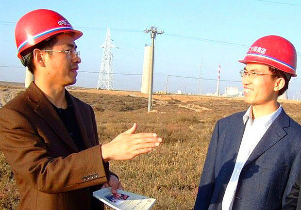 公司董事長、總經理王志義(左)、黨委副書記、紀委書記(主持黨委工作)邵紅軍討論工作的情景