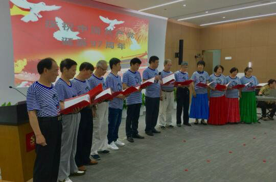 圖四、上海地鐵302標(biāo)項(xiàng)目部員工積極融入到當(dāng)?shù)厣鐓^(qū)慶祝建黨97周年活動(dòng)中來,詩朗誦《贊歌獻(xiàn)給黨》