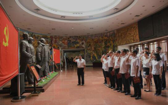 在平津戰(zhàn)役紀(jì)念館,“我志愿加入中國共產(chǎn)黨......”該公司黨委副書記、工會(huì)主席姚金立帶領(lǐng)全體黨員重溫入黨誓詞,洪亮、整齊的誓言,彰顯著新時(shí)代共產(chǎn)黨人的精氣神。