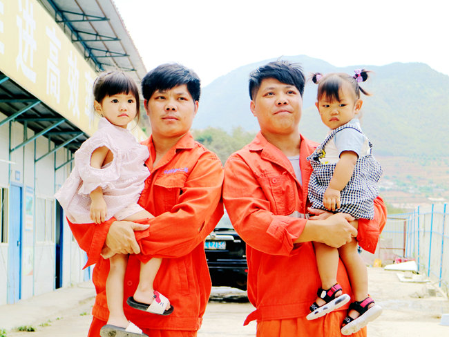 請過假,我們沿著逶迤的盤山便道,行駛近一個小時,來到了弟弟王縣偉所在的新華隧道2號斜井工區(qū)。聽說哥哥、嫂子帶著孩子要過來,早就等在了駐地的門口。兩家六口見了面,就別提多開心了。還真別說,這哥兒倆長得還真像,發(fā)型、膚色、身高、口音和笑容,甚至連兩家的孩子都長得相像。