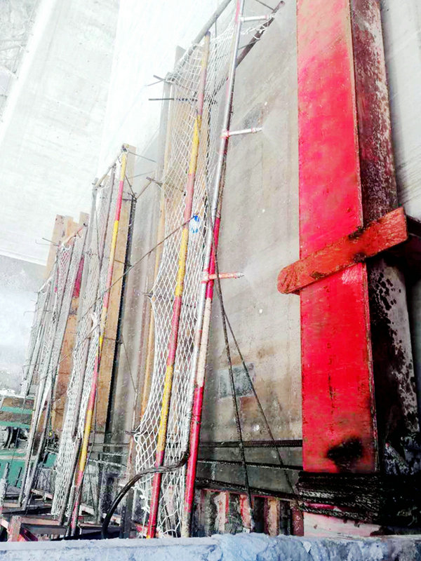 大臨鐵路瀾滄江雙線大橋全長431.6米,孔跨布置為102+188+102米連續(xù)剛構,規(guī)劃IV級航道。下部結構均采用鉆孔樁基礎,橋臺采用T型帶洞橋臺,最大墩高76米;上部結構采用102+188+102米連續(xù)剛構,梁體為單箱單室直腹板變截面箱梁,梁體全長393.9米。瀾滄江雙線大橋是連通大理至臨滄兩地的唯一鐵路交通紐帶,擁有大臨鐵路“最大跨、最高墩”,且唯一跨越瀾滄江。施工交通不便,連續(xù)梁線型控制難,高墩施工安全風險大,質量標準要求高,是全線重點工程。因為主跨188米,跨度排名世界第三,被譽為“世界高地應力第一跨”;同時,墩高76米,也是大臨鐵路全線最高的橋梁。施工中,他們分析連續(xù)剛構箱梁在高墩上采用懸臂節(jié)段澆筑施工,脫模后受工作面條件的限制,梁體的外表面混凝土難于合理養(yǎng)護,加之受峽谷風的影響,成橋后梁體表面可能會出現裂縫,嚴重影響結構的安全性和耐久性,其主要原因在于缺少高性能混凝土早期的養(yǎng)護。他們責成項目部副總工程師李貴陽帶人成立技術攻關小組,深入現場,制訂方案,反復進行比選優(yōu)化,終于完成了連續(xù)剛構混凝土自動養(yǎng)護系統的研制。實踐證明:水泵啟動后水從噴頭走噴出,噴到腹板頂部,順著腹板流向底板,整個腹板內外都能做到保濕養(yǎng)護,前期掛籃灑水帶模養(yǎng)護5天,掛籃前移后每節(jié)段施工10天,確保了混凝土養(yǎng)護齡期不少于14天。