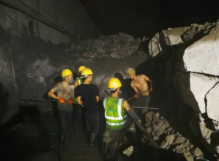 上圖為:隧道內(nèi)汗流滿面的作業(yè)員工