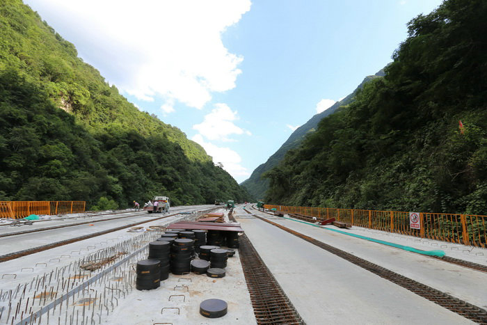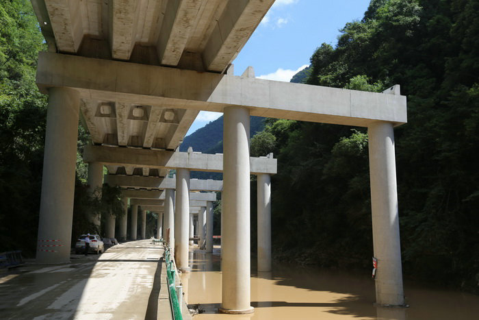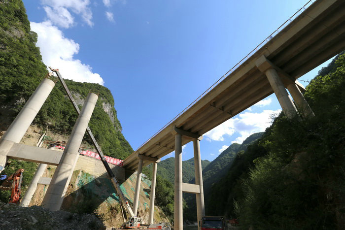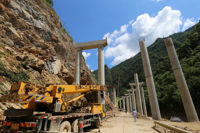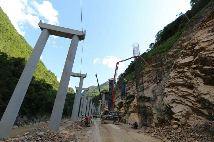 綿延不絕的秦巴山脈深處,西鎮(zhèn)高速公路建設(shè)正如火如荼。如果不到現(xiàn)場(chǎng),是難以想象該項(xiàng)目的建設(shè)難度。西鄉(xiāng)縣古城鎮(zhèn)是西鎮(zhèn)高速的起點(diǎn)一標(biāo)段,路線往南順著涇洋河上游就一頭扎進(jìn)了秦巴山,兩邊是數(shù)百米高的高山,涇洋河順著山勢(shì)沿河而下,河床寬的地方只有幾十米,窄的地方僅有十多米。有30多公里為無(wú)人區(qū),深山峽谷中除了河流沒(méi)有路。為了修建西鎮(zhèn)高速公路,業(yè)主提前兩年順河修建了幾十公里的便道,但其等級(jí)很低會(huì)車?yán)щy,材料運(yùn)輸極不方便。西鎮(zhèn)高速地處秦巴山腹地,兩山夾一河,兩邊是綿延不絕的高山,沒(méi)有一塊平地,且河道很窄,由于地勢(shì)獨(dú)特,西鎮(zhèn)高速除隧道外,整條線路全部設(shè)計(jì)在涇洋河中。