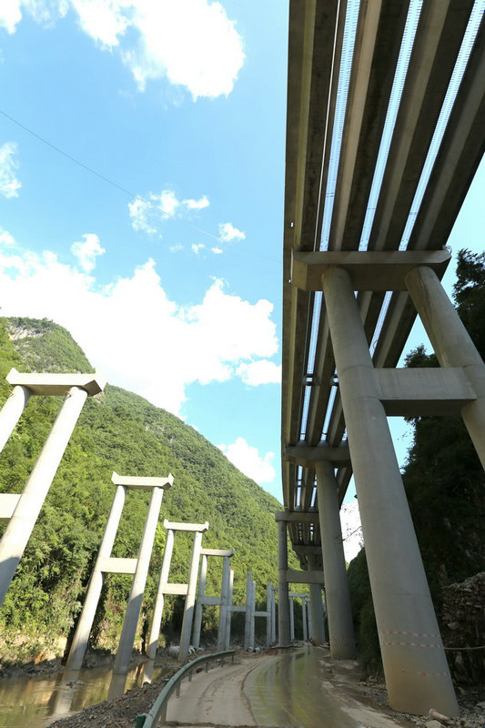 在西鎮(zhèn)高速的建設(shè)中,中鐵二十一局三公司承擔(dān)著XZ-6標(biāo)的施工任務(wù)。面對(duì)艱險(xiǎn)無(wú)比的地質(zhì)條件,他們?cè)陂_(kāi)局就受到了嚴(yán)酷的挑戰(zhàn),險(xiǎn)些“敗走麥城”。西鎮(zhèn)高速因受地勢(shì)限制,其設(shè)計(jì)十分獨(dú)特,可以說(shuō)是我國(guó)高速公路的一大奇觀。涇洋河屬長(zhǎng)江水系漢江流域,從鎮(zhèn)巴流經(jīng)西鄉(xiāng),在西鄉(xiāng)匯入牧馬河流域后流入漢江。涇洋河發(fā)源于鎮(zhèn)巴以上的崇山峻嶺之中,河岸兩邊都是幾百米高的大山,且山勢(shì)陡峭,近百公里長(zhǎng)的河流在秦巴山腹地峽谷中穿行蜿蜒而下。設(shè)計(jì)上,西鎮(zhèn)高速除為數(shù)不多的隧道和極少的一部分路基外,全部是橋梁工程,全線橋隧比例高達(dá)91.5%,為陜西省近年來(lái)橋隧比例最高的高速公路之一;路線走向一直沿河而行,這在其他地方是不可能見(jiàn)到的景觀,而它的修建難度,也是令人咋舌。