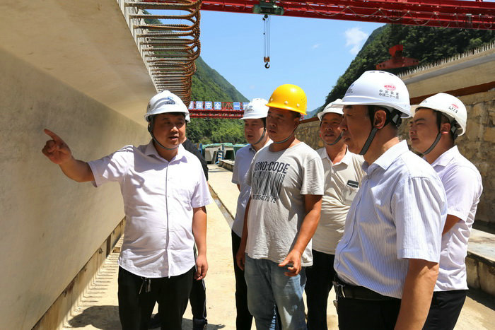 項(xiàng)目書記程文華(左)、副經(jīng)理劉磊磊(右)檢查箱梁質(zhì)量