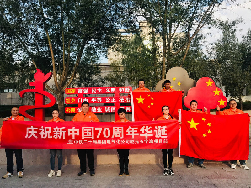 本站府谷訊(記者張明)9月23日,中鐵二十局集團(tuán)電氣化公司乾元五字灣鐵路項(xiàng)目黨支部為慶祝新中國(guó)70華誕,組織開(kāi)展了“祝福祖國(guó),我與國(guó)旗同框”主題活動(dòng),引導(dǎo)和激勵(lì)大家與時(shí)代同發(fā)展、與祖國(guó)共奮進(jìn),立足崗位開(kāi)拓創(chuàng)新、干事創(chuàng)業(yè)。項(xiàng)目黨員、團(tuán)員、職工代表和農(nóng)民工帶著燦爛的笑臉同鮮艷的五星紅旗合影,傳遞出了堅(jiān)定不移的愛(ài)國(guó)熱情,映照出了對(duì)祖國(guó)繁榮昌盛的真摯祝福。