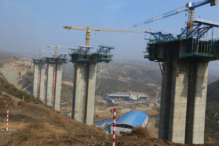 國(guó)道336神木店張公路四支河特大橋主墩橋面至地面101.5米