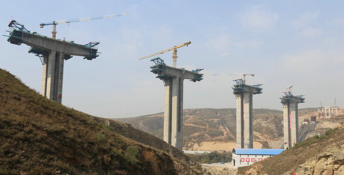本網(wǎng)陜西榆林10月17日訊(記者 尹登明 通訊員 劉娟娟 張曉歡)連接兩座山頭的336國道神木店張公路四支河大橋上的4個主墩,在順利進行0號塊澆筑后,節(jié)段施工不斷向兩端延伸,遠遠看去,光禿禿的黃土梁峁上似幾只雄鷹一字排開展翅飛翔。