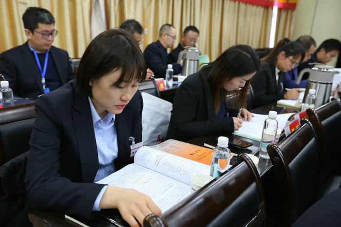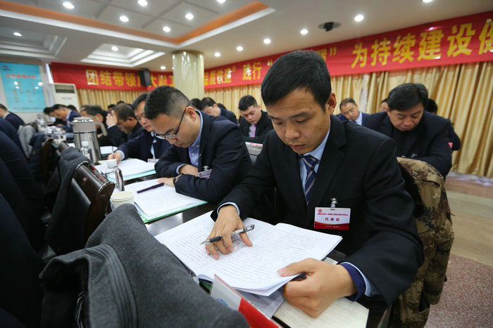 圖為會場情景之三 14點30分,各代表團討論。審議公司工會第三屆委員會工作報告、經(jīng)費收支情況報告,并投票表決;醞釀第四屆工會委員會、經(jīng)費審查委員會候選人名單;審議大會選舉辦法(草案);醞釀大會總監(jiān)票人、監(jiān)票人建議名單。14點50分,召開第二次主席團會議。聽取各代表團團長審議“三個報告”情況、聽取各代表團審議大會選舉辦法(草案),通過第四屆工會委員、經(jīng)費審查委員會委員候選人名單情況匯報,確定大會總監(jiān)票人、監(jiān)票人建議名單。