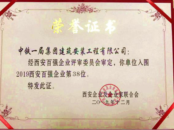 (西安訊)近日,經(jīng)西安市百強(qiáng)企業(yè)評(píng)審委員會(huì)審定,中鐵一局建安公司入圍2019年西安百強(qiáng)企業(yè)第38位。