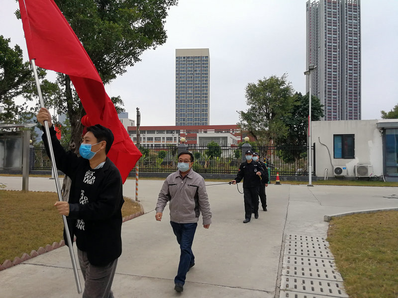 楊師傅今年53歲,是總承包部安質部李鵬飛的岳父,從遙遠的東北來到廣州,本來是看看外孫,出去玩玩,但總承包部原有的4名保潔人員只有1人值班,疫情防控急需人手,尤其是消毒殺菌和衛(wèi)生清潔工作。得知這一情況后,他主動請纓,加入到消毒殺菌和保潔的工作中,除了每天上午、下午的“84消毒液”定期噴砂,他還在每天早上對公共區(qū)域進行衛(wèi)生清掃,幾天下來,他對總承包部大院的各個角落更加熟悉了,哪些位置人過往比較多、哪些位置容易被人忽略、哪些位置需要重點噴灑。
