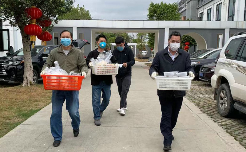 春節(jié)后返程人員的隔離觀察防護是一件大事,但隔離期間的送餐工作也不容小視,一方面要滿足一日三餐的正常需求,另一方面也要做好送餐人員與隔離人員之間的雙方防護,正當愁眉不解之時,總承包部值班領導梁興樸和李瑞華一商量:“排個序吧,大家一個都不能少,但是,要從領導做起、從黨員做起。”于是,在值班人員中,副總、部長、段長、副部長等依次排序,每人輪流送餐,送餐工作成了一種自覺行為。隨著后來返程人員逐漸增多,一個人不夠了,怎么辦,不用急,也不用招呼,主動幫忙人的還真不少,大家齊心協(xié)力,盛飯的盛飯、添菜的添菜,端湯的端湯,三下五除二,把為隔離人員送餐當作了一件快樂的工作。