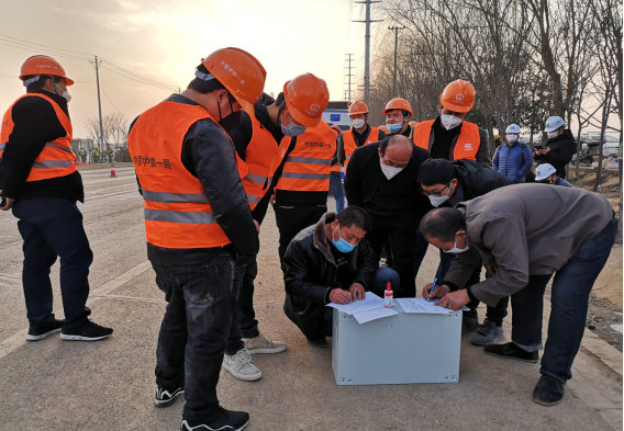 現(xiàn)場服務(wù)保障先鋒崗黨員郝曉琨和屈昆一次次去500米以外的工地門口接工人、登記、量體溫、酒精噴灑消毒、接送作業(yè)工具、親自為大家送飯菜。當(dāng)現(xiàn)場作業(yè)人員反映飯菜吃不慣的時候,他立即讓屈昆開車去高陵城里一家一家找,終于找到了符合大家口味的供應(yīng)飯店。