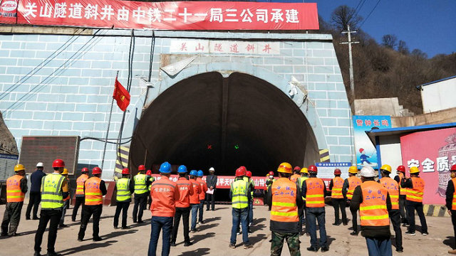 圖為關(guān)山特長隧道左洞施工至分界里程儀式現(xiàn)場