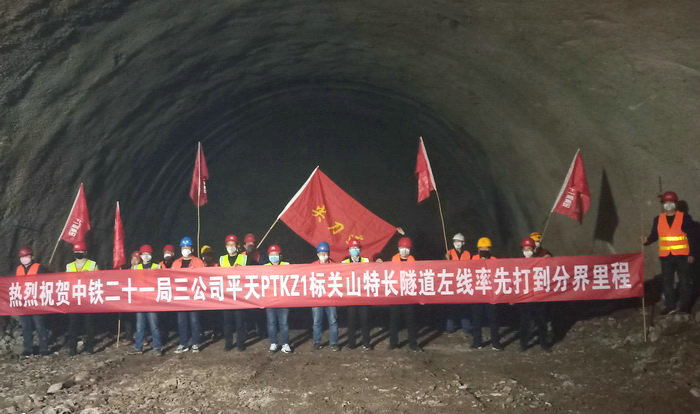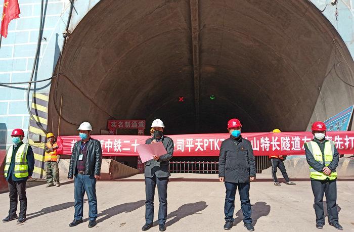 圖為項目辦領(lǐng)導(dǎo)與建設(shè)者在貫通點祝賀左貫通 該隧道自2016年4月10日開工建設(shè)以來,PTKZ1標(biāo)項目充分發(fā)揚(yáng)團(tuán)結(jié)和諧、戰(zhàn)斗有力、百折不撓、永爭第一的鐵道兵精神和改革創(chuàng)新、精益求精、精細(xì)管理的“工匠”精神,堅持機(jī)械化施工,采用新工藝、新方法,引進(jìn)國際先進(jìn)的“聚能水壓爆破新技術(shù)”,克服了關(guān)山地質(zhì)構(gòu)造復(fù)雜、圍巖軟弱破碎、進(jìn)口端淺埋段下穿304省道、工程材料短缺、關(guān)山特殊極端氣候、雪災(zāi)、洪災(zāi)、新冠疫情等重重困難,尤其是今年初在新型冠狀病毒肆虐神州大地的特殊時期,PTKZ1標(biāo)項目關(guān)山隧道斜井架子隊不畏艱辛,勇于擔(dān)當(dāng),科學(xué)組織,周密部署,嚴(yán)格防控,春節(jié)期間繼續(xù)保持正常施工,確保了隧道左洞早日安全順利掘進(jìn)至分界里程,為關(guān)山隧道全面貫通奠定了堅實基礎(chǔ),也為全線其他各標(biāo)段后續(xù)施工樹立了榜樣,很好的發(fā)揮了駐甘央企的示范和引領(lǐng)作用。中鐵二十一局三公司副總經(jīng)理、項目負(fù)責(zé)人魏惠民在隧道左洞順利打到分界里程之際,即興賦詩一首:“鐵軍不畏關(guān)山難,萬米長隧身手顯。洞口穿越淺埋層,洞內(nèi)再斗軟巖層。雪災(zāi)洪災(zāi)懼畏懼,新冠病毒亂又添。四年艱辛風(fēng)雨路,今日分界戰(zhàn)旗舞”。真實道出了PTKZ1標(biāo)項目在關(guān)山隧道施工道路中經(jīng)歷“九九八十一難”取得“真經(jīng)”的不易。