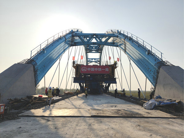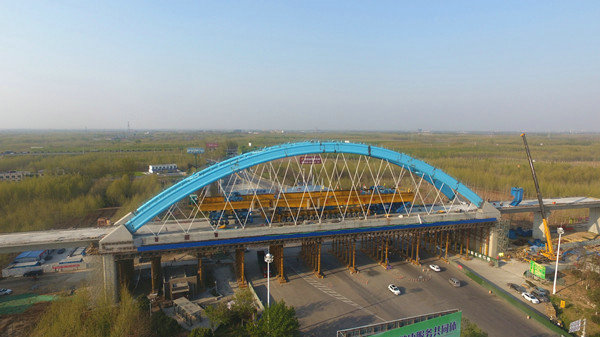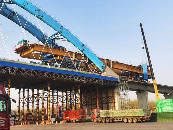 4月6日,魯南項目部架梁一隊JQ900B型架橋機順利通過了魯南高鐵洸府河特大橋跨S614省道128米系桿拱連續(xù)梁。