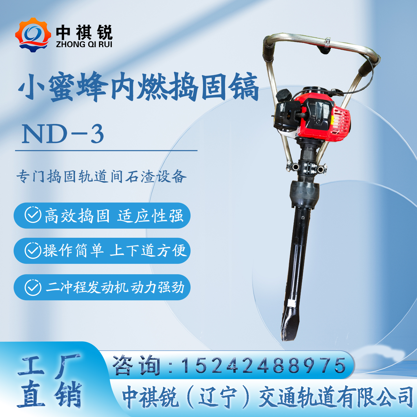 ND-4內(nèi)燃搗固鎬是鐵路道床養(yǎng)護的一種小型養(yǎng)路機械,主要適用于道岔及繁忙線路上利用列車間隔進行的搗固作業(yè),它具有重量輕、體積小、性能優(yōu)良、壞損率低、上下道方便迅速、操作輕便等優(yōu)點。