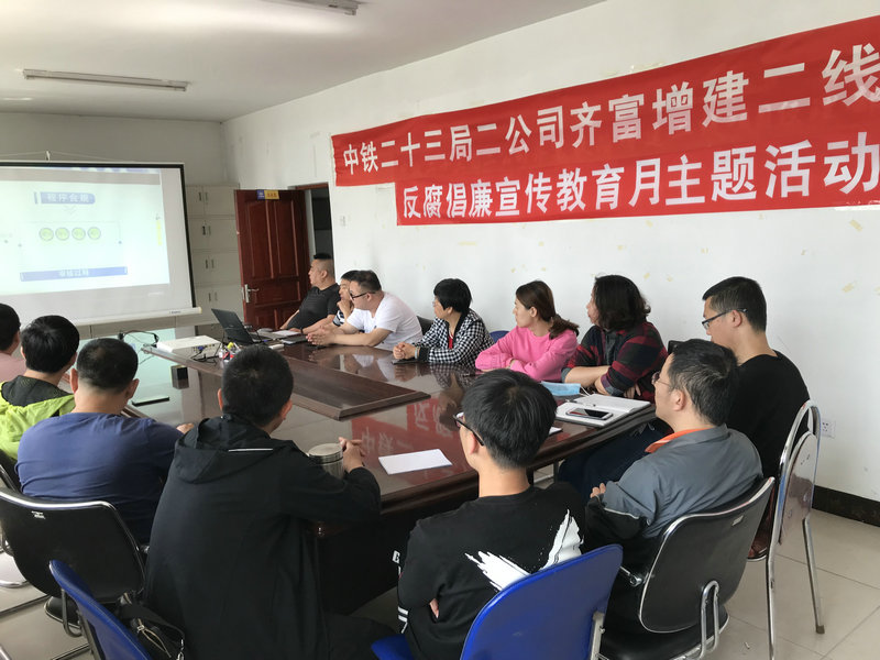 為進一步增強項目干部的個人修養(yǎng)和廉潔自律的自覺性,筑牢拒腐防變的思想道德防線,促進項目干部的廉潔守法,更好推動“反腐倡廉宣傳教育月”活動的進展,5月24日中鐵二十三局集團二公司齊富項目部組織項目全體黨員、群眾干部集中觀看了黨風廉政警示教育片《動漫講規(guī)矩》。