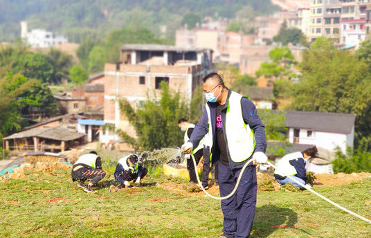 本站贛州訊 (通訊員 王植 姚州) 4月15日,中鐵三局線橋公司贛深高鐵全體員工對鋪軌基地周邊路基護(hù)坡段進(jìn)行清理并種植草皮綠化,換“裝”后的基地,不僅起到了減少揚塵,美化環(huán)境的作用,更重要的是為大家?guī)砹耸孢m的工作環(huán)境。