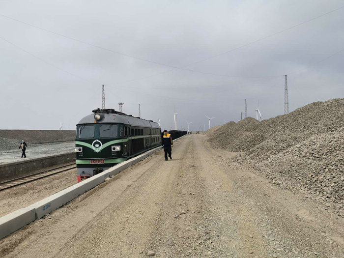 此次三葛莊道砟專用線改造,主要是將原先200米低站臺改造為高站臺,經(jīng)過對線路的實地勘查測量,公司確定改造方案,嚴(yán)控安全標(biāo)準(zhǔn),克服三十里風(fēng)區(qū)惡劣的天氣條件,與時間進行賽跑,在全體參戰(zhàn)員工的共同努力下,7天立灰枕616根,澆筑混凝土182方,開挖土方200立方米,填筑土方6500立方米,擴大貨臺60米寬,修整站臺場地和運砟便道,清理貨位。僅用13天就完成站臺改造,順利通過了業(yè)主單位的驗收,目前首列老K車已開通運營。