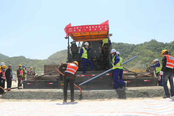路面分部經(jīng)理劉少華在接受采訪時說到:“今天試驗段的順利攤鋪,標志著中鐵十一局集團二公司承建的十堰快速路項目正式進入到路面工程施工階段。我們有信心完成指揮部、市交通局下達的施工任務,保證在今年7月底完成十堰東站至華西段半幅瀝青中面層通車的目標,為十堰人民交上一份滿意的答卷。”此次路面底基層試驗段的順利鋪筑,是十堰快速路項目百日攻堅施工計劃的一次階段性勝利,極大鼓舞了全體參建人員的士氣,為后續(xù)路面施工提供了可靠的檢測數(shù)據(jù)和技術指導。下一步,項目部將繼續(xù)按照公司“雙創(chuàng)”爭先活動和“大干100天”勞動競賽活動要求,繼續(xù)保持施工大干熱潮,確保按業(yè)主時間節(jié)點完成任務,努力打造成公司在十堰片區(qū)的標桿工程。