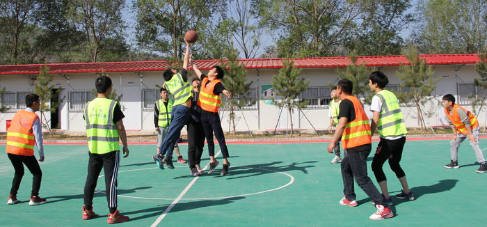 所有演職人員合影留念 5月2日,項(xiàng)目舉行了籃球、羽毛球、乒乓球及象棋比賽。各類球賽隊員斗志昂揚(yáng)、頑強(qiáng)拼搏,象棋比賽選手冷靜思考,沉著應(yīng)戰(zhàn)?;@球比賽是本次活動的焦點(diǎn),上午9點(diǎn),籃球賽場,哨聲響起,比賽一觸即發(fā),以項(xiàng)目負(fù)責(zé)人魏惠民為首的綠隊和以副經(jīng)理畢鈺為首的紅隊展開了激烈的角逐?;@球健兒們主動出擊,以矯健熟練的動作迅速傳球,直逼籃板。雙方隊員都迅速進(jìn)入狀態(tài),個個雄姿英發(fā)。在場上你爭我奪、你攻我守,投球動作帥氣利落,雙方隊員激情高漲,爭奪異常激烈。拉拉隊員吶喊助威聲音此起彼伏,整個賽場氣氛十分活躍。紅隊?wèi){借默契的配合和精準(zhǔn)的投籃最終以1分的優(yōu)勢獲勝。