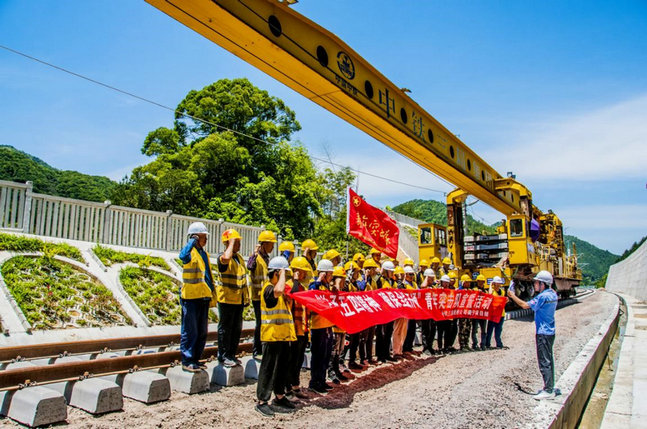 首先六分公司黨支部書記王斌彥從施工進(jìn)度、安全管理等方面做了講話,動員大家積極投身于施工生產(chǎn)當(dāng)中去,要確保515正線軌通,930全線開通工期節(jié)點,鼓舞大家要敢于拼搏,甘于奉獻(xiàn),充分發(fā)揮突擊隊的生力軍和排頭兵作用,為衢寧鐵路建設(shè)奉獻(xiàn)青春。接著項目團(tuán)支部書記胡野代表青年突擊隊承諾如下:“最沉重的擔(dān)子我們挑,最危險的地方我們闖,最緊急的關(guān)頭我們上,最困難的時刻我們到,最艱苦的地方我們?nèi)?。請公司領(lǐng)導(dǎo)放心,青年突擊隊決不辜負(fù)公司領(lǐng)導(dǎo)對我們的殷切期望,迎難而上,開拓創(chuàng)新,真抓實干,圓滿完成公司交給我們的任務(wù),為保質(zhì)保量建設(shè)好衢寧鐵路奉獻(xiàn)青春力量。”